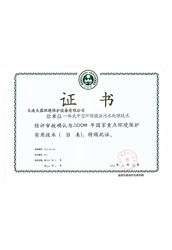 企業(yè)轉(zhuǎn)型,“大連大器環(huán)保設(shè)備有限公司”更名為“大器環(huán)保工程(大連)有限公司”。FRP凈化槽及相關(guān)零部件生產(chǎn)停止,開(kāi)始生產(chǎn)銷售環(huán)保裝置及環(huán)保工程的設(shè)計(jì)施工與日常維護(hù)管理。掀起了中國(guó)的污水處理工程新開(kāi)端。